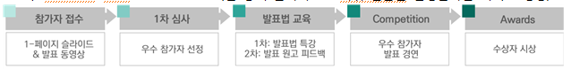 라. 참가방법: 본인의 학위논문(2026년 2월 졸업예정자 대상) 혹은 학술지에 논문게재된 연구 (2025년 한정, 재학생 및 신진연구인력 대상; 제1저자인 경우만 인정)를 일반 대중이 쉽게 이해할 수 있도록 1-페이지 슬라이드로 제작한 후, 3분 이내의 발표 동영상 콘텐츠를 제작하여 신청서(첨부)와 함께 제출