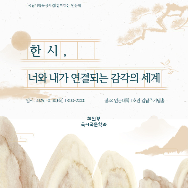 3. 주제: 한시, 너와 내가 연결되는 감각의 세계 4. 강연자: 국어국문학과 최진경 교수님