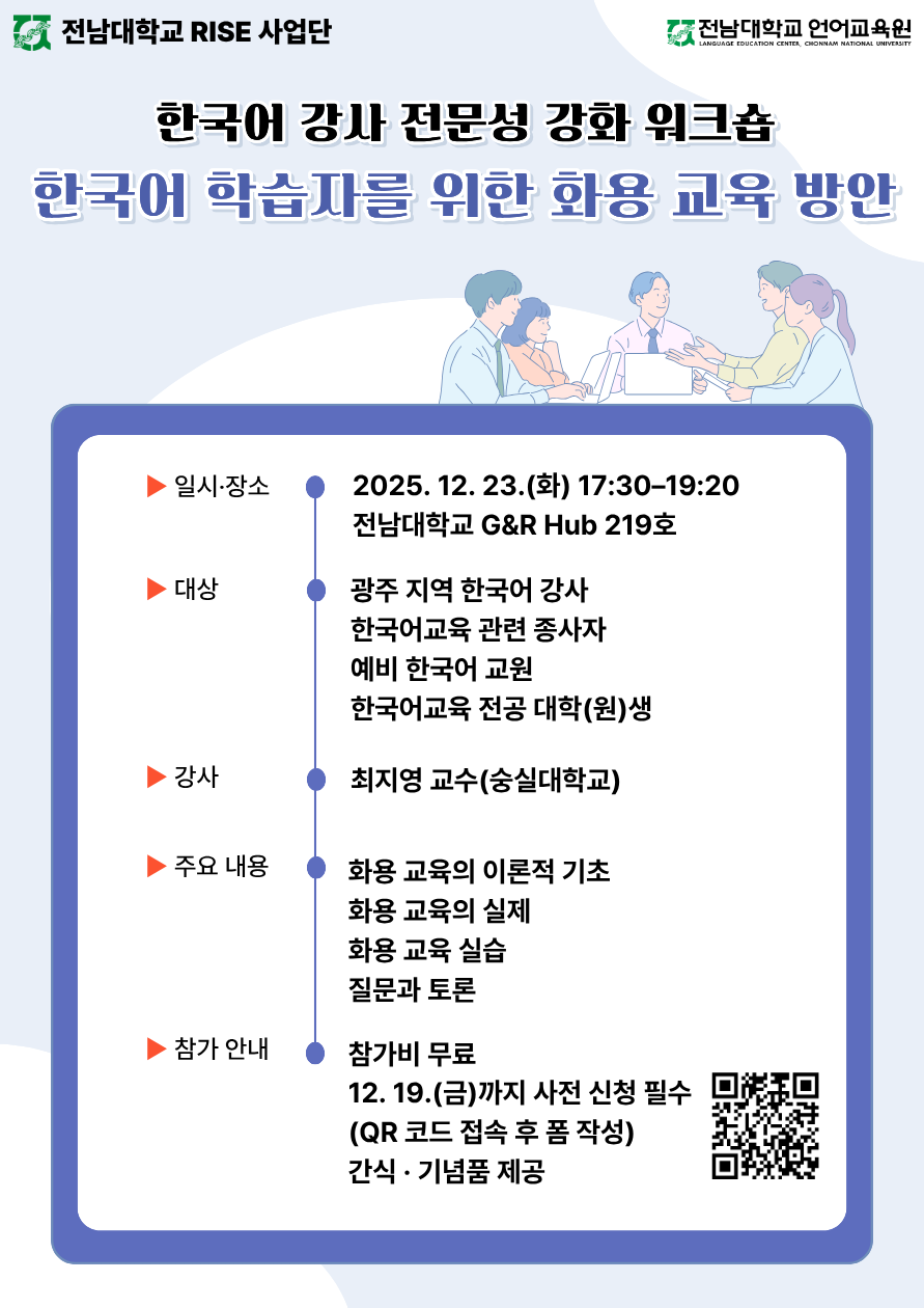 라. 대상: 광주 지역 한국어 강사, 한국어 교육 관련 종사자, 예비 한국어 교원, 한국어 교육 전공 대학원생